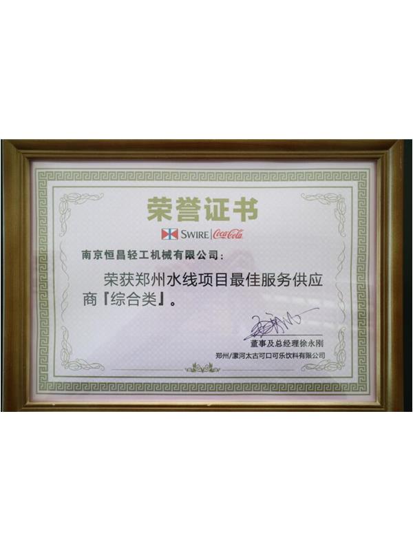 南京恒昌包裝作為后段整包商,在鄭州太古可口可樂(lè)48000bph水線(xiàn)項(xiàng)目中獲得“最佳服務(wù)供應(yīng)商”殊榮!